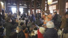 前の年の悪い行いを反省し、今年一年災いなく過ごせるよう祈る伝統行事「修正会(しゅしょうえ)鬼追い」が1月8日、鶴林寺(加古川市加古川町)本堂で行われた。