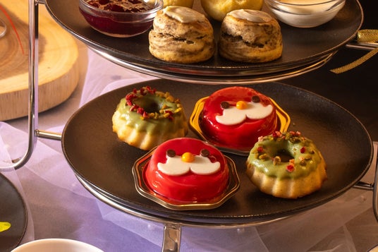株式会社神戸ポートピアホテル (神戸市中央区、総支配人 伊藤 剛) のティーラウンジ ベルクールでは、2025年11月17日(月)より『クリスマスアフタヌーンティーセット』を提供いたします。サンタクロースを描いたムースや、ヨーロッパの伝統菓子などクリスマス気分が高まるスイーツと、クリスマスの食卓を想わせるセイボリーを揃えたアフタヌーンティーセットです。