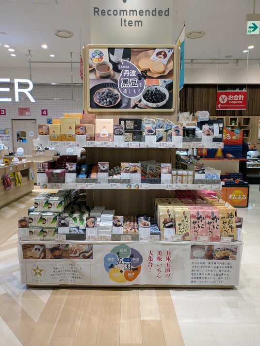 淡路島の玄関口に位置し、明石海峡大橋を眺めながら旬の食材を味わえるレストランや、特産品のショッピングを楽しめる淡路ハイウェイオアシス(運営:ユーアールエー株式会社/所在地:兵庫県淡路市岩屋)の、オアシス館1Fお土産物ショップ「淡路物産館」では、2025年11月29日(土)まで、期間限定にて“五つ星ひょうご”特設コーナーを設置し、普段取扱っていない五国の県産品を販売します。この機会に、兵庫五国の逸品をお買い求めいただきたく存じます。