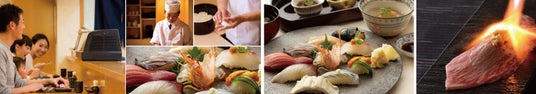 画像左から■すし富イメージ■おまかせにぎり御食国(松)■A5国産黒毛和牛炙り寿司