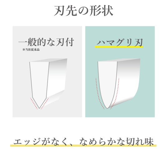 2. 抵抗が少なく食材に食い込みやすい、ハマグリ刃の感動の切れ味