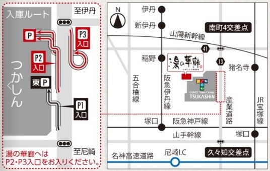 ■つかしん天然温泉 「湯の華廊」営業時間&アクセス