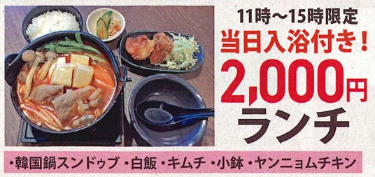 平日、11時~15時限定!当日入浴付き、選べるお得なランチがおすすめです。