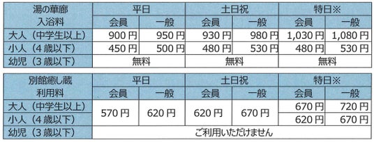 ■つかしん天然温泉「湯の華廊」利用料金(税込)について