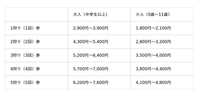 例)1狩り券をご購入の方は、合計で2狩り分お楽しみいただけます。